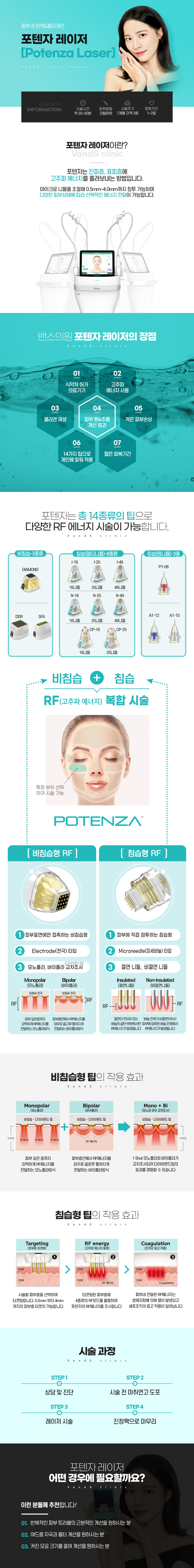 포텐자 레이저는 피부 진피층에 마이크로 니들을 삽입하여 RF(고주파) 에너지를 흘려보내